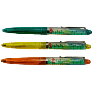 ペンを傾けると液体の中のゴンちゃんが動きます。忍者と富士山の2種類、どちらのタイプが好みかな??